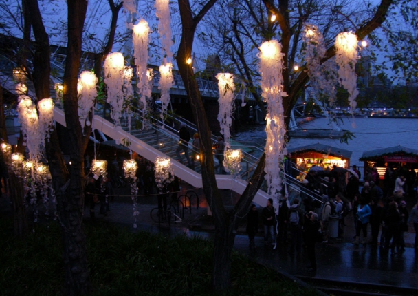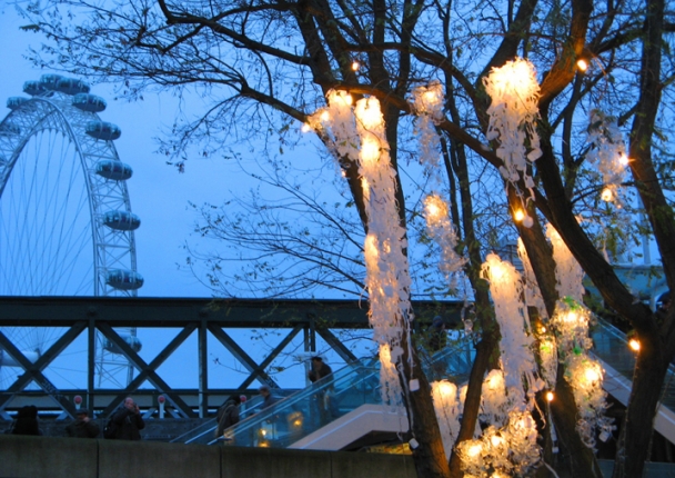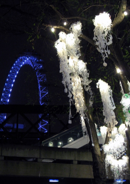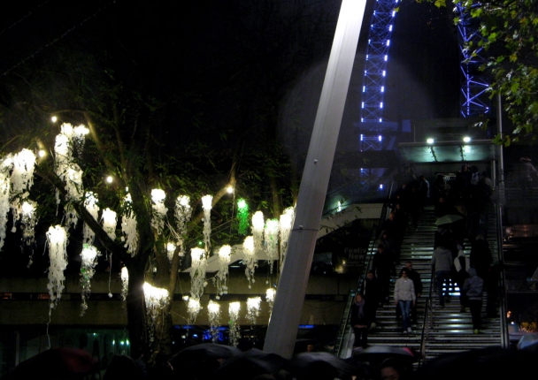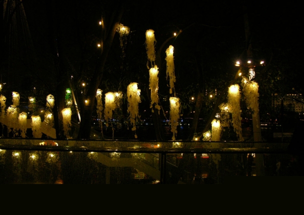 Slowing pedestrians walking on the south bank of the River Thames and crossing the Hungerford Bridge, the work creates an informal social space. Connecting its audience not only with their immediate riverside context, but also with each other, it exploits the potential for transformative spatial experience to be created by apparently functional routes of circulation.