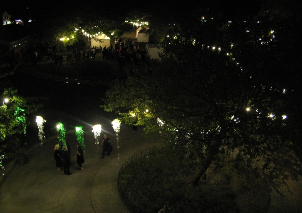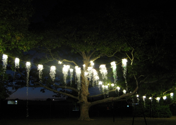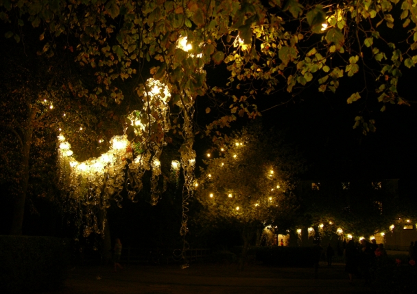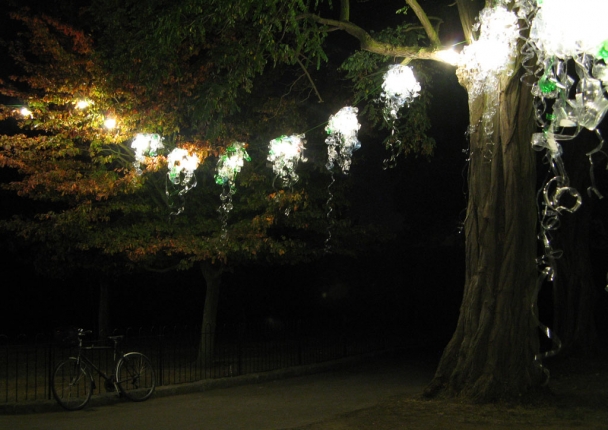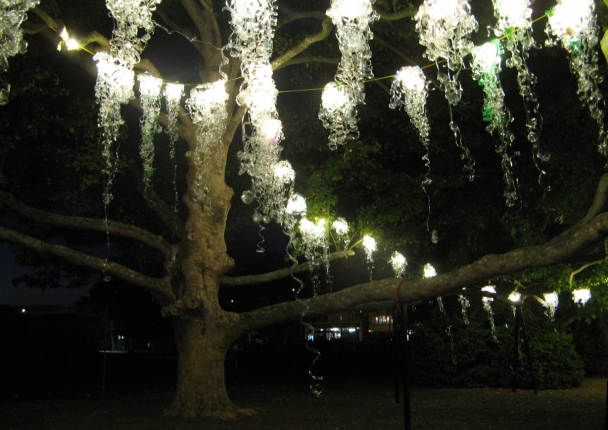 Connecting the Hall with its landscape context, Chandelier comprises a permanent sculpture for the Hall's interior, and an installation for the 110 metre, historic avenue of trees that leads to it. Actively engaging the Hall’s local population in its creation, the work asked them to consider issues relating to recycling and sustainability. In this way Chandelier expresses the potential of art to effect positive environmental and social change.