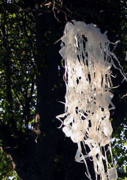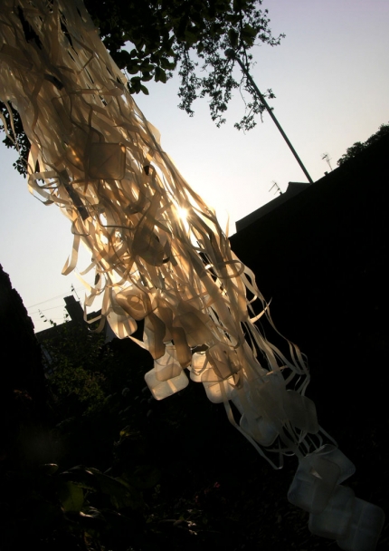 The work is one of a series of light installations that explores the reuse of reclaimed and recycled materials, and alternative forms of lighting. Located on and around the new pedestrian and cycle route of the 2002 Pennyferry Bridge (itself on the site of an historic ferry crossing), the work celebrates the bridge and more sustainable modes of transport.