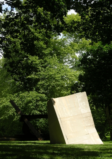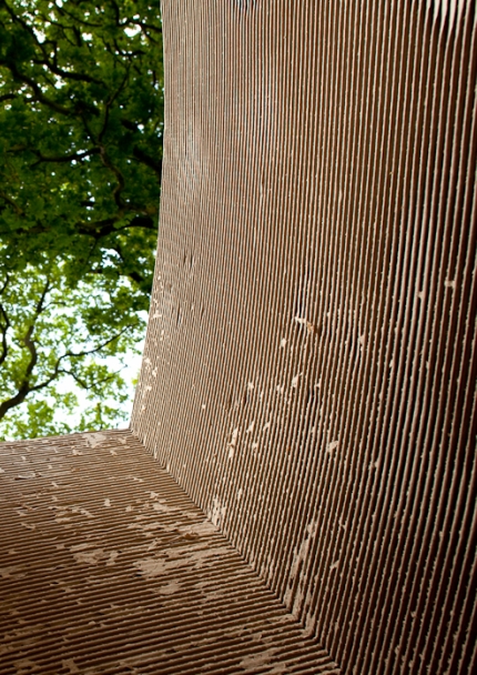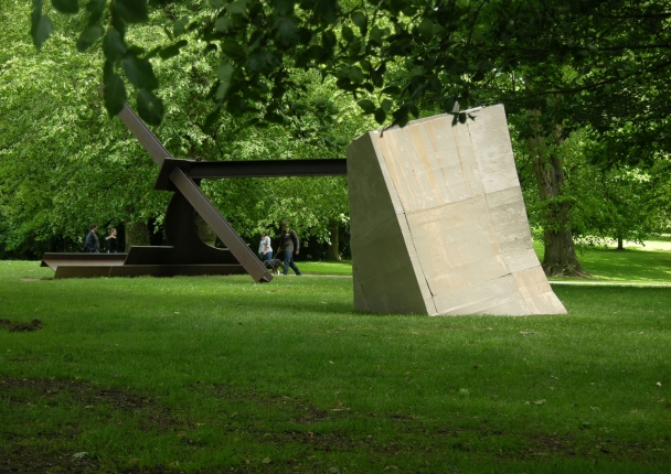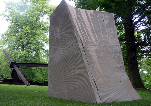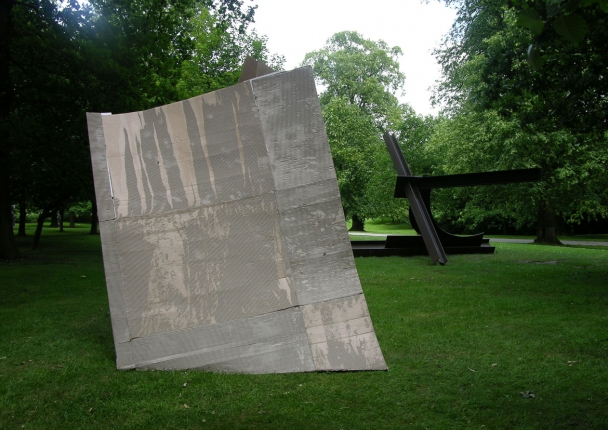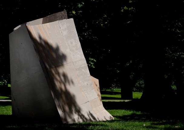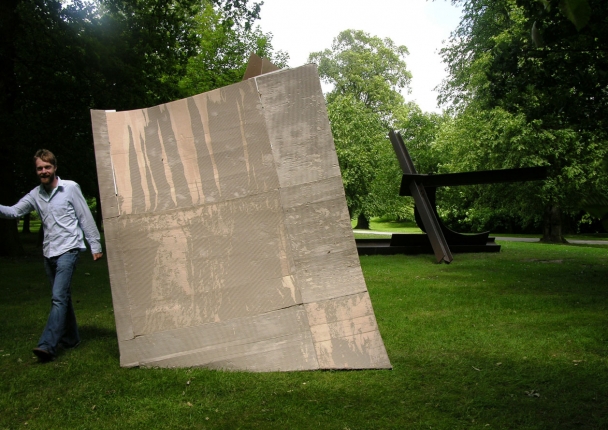 Hide responds to the landscape context and collection of the Yorkshire Sculpture Park in the north of England. Inspiring active participation, it is conceived as usable sculpture. The work’s form is generated through the performed manipulation of a single plane of engineered material; it is a building block requiring no other. It serves multiple, self-devised functions, including the discreet observation of the Park from within it. In this way it is both ‘hide’ and ‘hidden’ within the context of the Park’s sculpture collection.