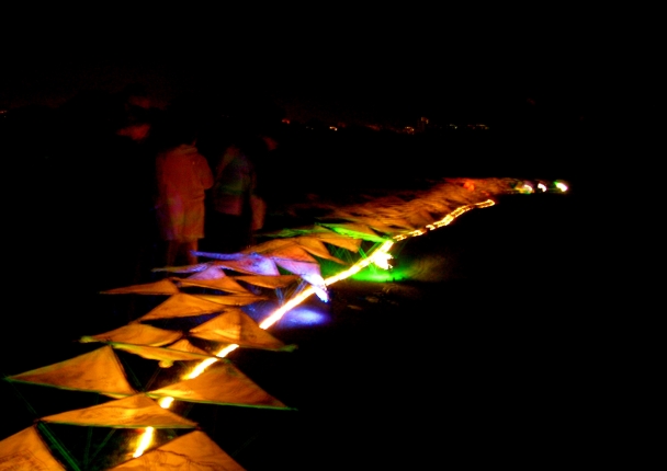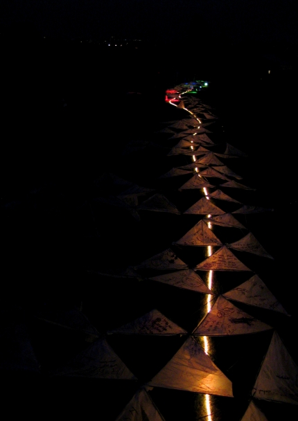 The Wishmakers is a 110 metre illuminated sculpture created within a public park to initiate the direct and reflective engagement of a population with its place of habitation.