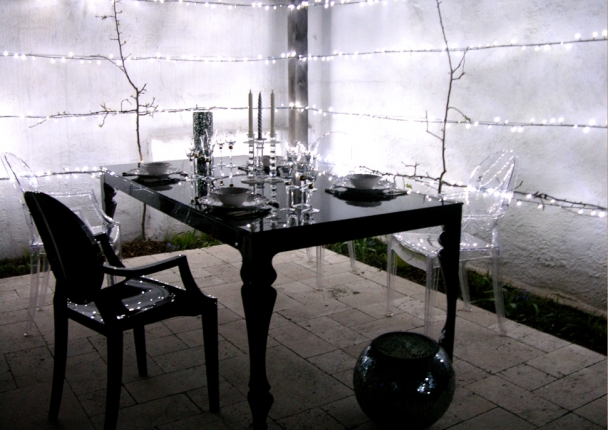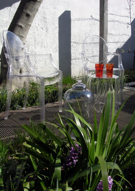 The space is essentially a social one for immediate family and friends. Furniture has been selected that allows the courtyard to be used in multiple ways depending on the time of year, the time of day, or the nature of an occasion. The furniture’s transparency, tracery and reflection allow views through or beyond it, making the limited space feel generous.
