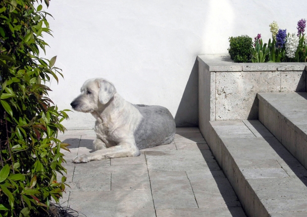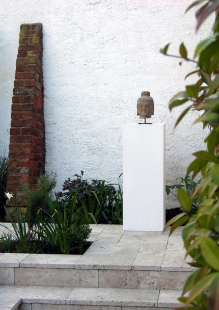 The garden can be as much a place of dwelling as any house or interior. This courtyard garden adjoins the kitchen and dining room of an historic town house. Conceived as an outdoor room, it extends the interiors spatially and visually through surface material, form and colour. Exposing historic brickwork and stone garden architecture, and displaying objects significant to its owners, the courtyard unites the past with the present, and is a cache of meaning and memory.