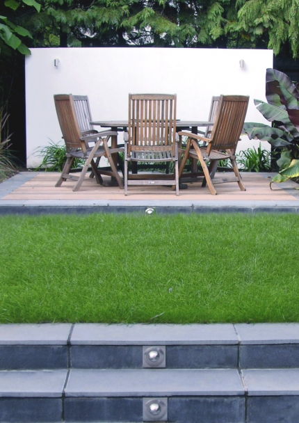 Movement around this garden takes place through a series of sculptural volumes, described through apparent or suggested planes of space. Where these planes are apparent they become objects within space, such as the gazebo, arcade, wall and the daring flight of steps. Their design within the garden draws on Thadian Pillai's understanding of sculpture and the three-dimensional object in space. This incites a dynamic that intensifies the spatial experience, allowing the owners to not only view 'the objects', but to inhabit them.